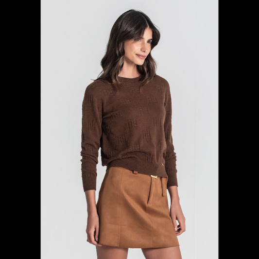 Camisola de malha estruturada em cognac - SMASHED LEMON