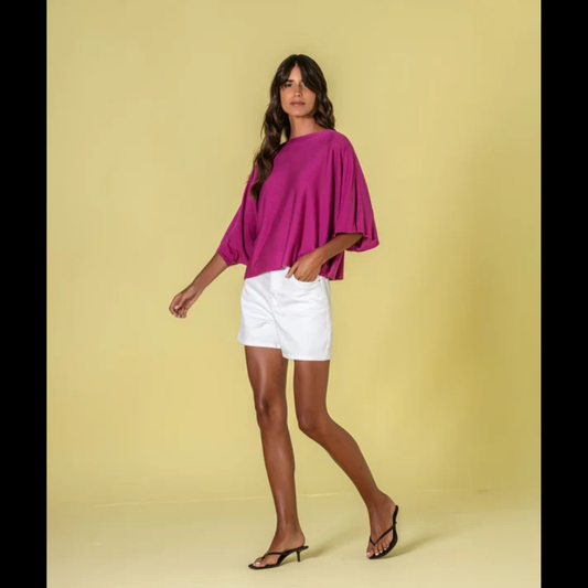 Camisola oversize decote redondo em fúcsia - RÜGA