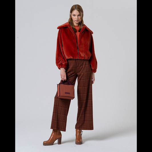 Casaco curto de pelúcia em tijolo - SURKANA