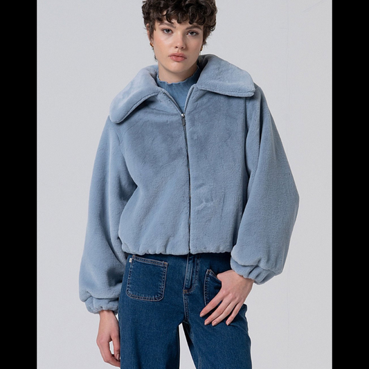 Casaco curto de pelúcia em azul - SURKANA