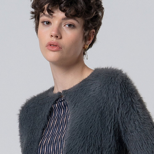Casaco de tricô com efeito de pelo em cinza - SURKANA