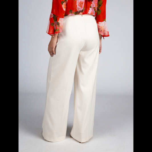 Calças pantalonas beges com ilhós - SILVINA CAMPOS