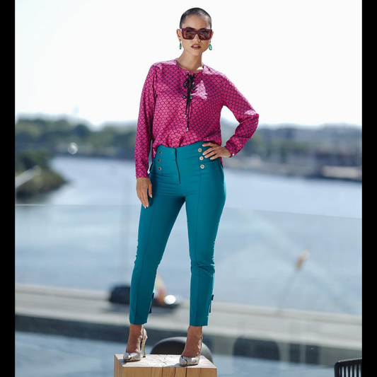 Calças skinny verdes com botões à frente - SILVINA CAMPOS