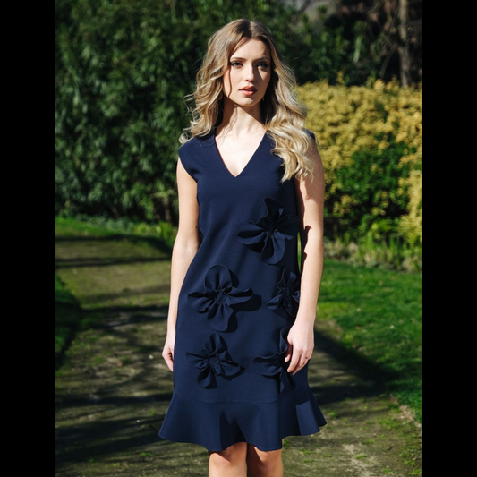 Em promoçãoVestido Azul com flores 3D - SILVINA CAMPOS