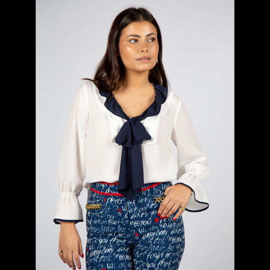 Calças pantalonas azuis com ilhós - SILVINA CAMPOS